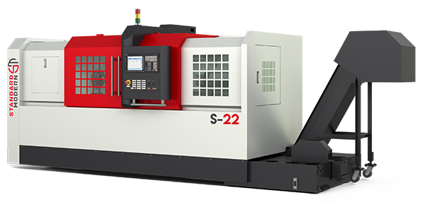 The S Series slant bed lathes are amoung the new, next generation Standard Modern™ CNC lathes and CNC toolroom lathes. Designed to produce space-age parts with space-age tools. Ideally suited for toolroom, maintenance and production. The lathe is designed and built in North America and has more important plus features for all turning jobs in your shop.